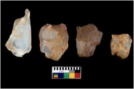 | Description / विवरण | There are n 4 flake cores. All of them are fully fluted flake cores without any trace of crested ridge flakes. Some are tapering at one end and some have sharp edges. |