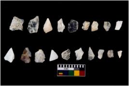 | Description / विवरण | There are n 19 Flake tool; There are multidirectional irregular scar pattern on them. Some of them are tapering at one end, few have pointed functional top. |