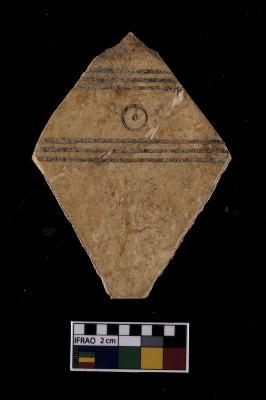 | Description / विवरण | Specimen of Decorative piece with horizontal lines and circle with centric dot, diamond shape. |