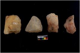 | Description / विवरण | There are n 4 cores; there are multi directional irregular scar pattern on them. Some of them are tapering at one end. Most of them having blunt edges. |