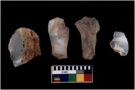 | Description / विवरण | There are n 4 of utilized worked cores and show multidirectional irregular scar pattern on both dorsal and ventral sides. |