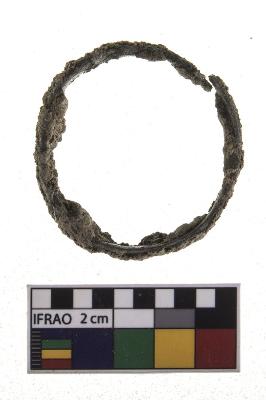 | Description / विवरण | Broken copper ring with flat section, rusted surface. |