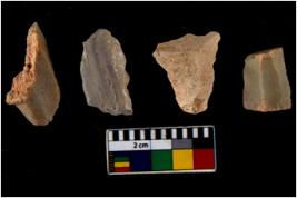 | Description / विवरण | There are n-4 of utilized flake cores. There are multidirectional irregular dominant scar pattern on both dorsal and ventral face of the cores. |