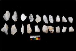 | Description / विवरण | There are n 20 flakes tool; there are multidirectional irregular scar pattern on them; made of short flakes and few have tapering edges. |
