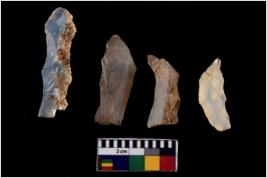 | Description / विवरण | There are n 4 Flake tool; There are multidirectional irregular scar pattern on them. few have blunt edges, Some of them are tapering at one end. |