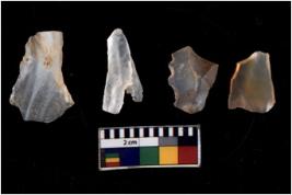 | Description / विवरण | There are n 4 of utilized worked cores and show multidirectional irregular scar pattern. Two have a broken tip. |