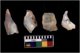 | Description / विवरण | There are n 4 of utilized worked cores and have irregular dominant scar pattern on both dorsal and ventral sides. They have sharp edges. |