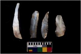 | Description / विवरण | There are n 4 flakes tool; there are large flakes with sides trimmed, Marks of secondary flaking are present on the both the faces. |