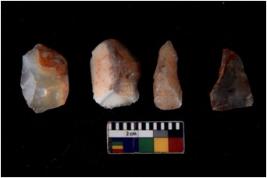| Description / विवरण | There are n 4 of utilized worked cores and show multidirectional irregular scar pattern on both dorsal and ventral sides. |