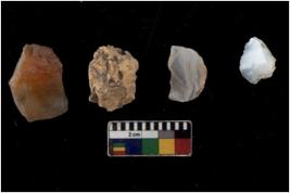 | Description / विवरण | There are n 4 flakes tool; there are flakes tool with prominent flaking marks. It made up of a short flakes with sides trimmed. It is rectangular in shaped. |