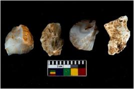 | Description / विवरण | There are n 4 flake cores. All of them are fully fluted flake cores without any trace of crested ridge flakes. Some have sharp edges whereas some have blunted edges. |