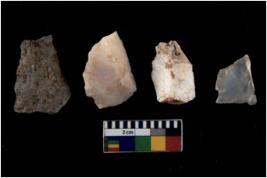 | Description / विवरण | There are n 4 flakes tool; there are multidirectional irregular scar pattern on them; made of short flakes and all four have tapering edges. |