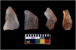 | Description / विवरण | There are n 4 of utilized worked cores and show multidirectional irregular scar pattern on both dorsal and ventral sides. Two have a broken tip. |