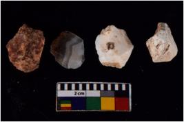 | Description / विवरण | There are n 4 cores; there are multidirectional irregular scar pattern on them. The reverse bulb and platform can be seen |