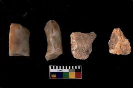 | Description / विवरण | There are n 4 flakes tool; there are multidirectional irregular scar pattern on them; made of short flakes and all four have tapering edges. |