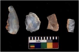 | Description / विवरण | There are n 4 of utilized worked cores and have irregular dominant scar pattern. One has a flat base. |