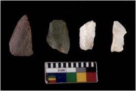 | Description / विवरण | There are n 4 flakes tool; there are multidirectional irregular scar pattern on them; made of short flakes and all four have tapering edges. |