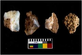 | Description / विवरण | There are n 4 flake cores. All of them are fully fluted flake cores without any trace of crested ridge flakes. Some are tapering at one end. Few have sharp edges while some have flat base. |