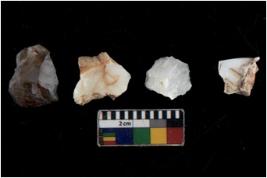 | Description / विवरण | There are n 4 flakes tool; there are multidirectional irregular scar pattern on them; made of short flakes and all four have tapering edges. |