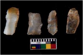 | Description / विवरण | There are n 4 flakes tool; there are large flakes with sides trimmed, Marks of secondary flaking are present on the both the faces. |