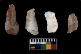 | Description / विवरण | There are n 4 flakes tool; there are multidirectional irregular scar pattern on them; made of short flakes and all four have tapering edges. |