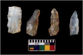 | Description / विवरण | There are n 4 Flake tool; There are multidirectional irregular scar pattern on them. few have blunt edges, Some of them are tapering at one end. |