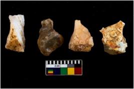 | Description / विवरण | There are n 4 flake cores. All of them are fully fluted flake cores without any trace of crested ridge flakes. Few are tapering at one end. Some have flat base while some have blunted edges. |