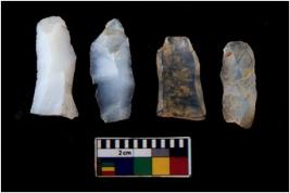 | Description / विवरण | There are n 4 flakes tool; there are large flakes with sides trimmed, Marks of secondary flaking are present on the both the faces. |