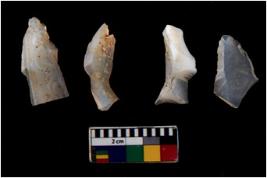 | Description / विवरण | There are n 4 Flake tool; There are multidirectional irregular scar pattern on them. few have blunt edges, Some of them are tapering at one end. |