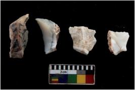 | Description / विवरण | There are n 4 flakes tool; there are flakes tool with prominent flaking marks. It made up of a short flakes with sides trimmed. It is rectangular in shaped. |