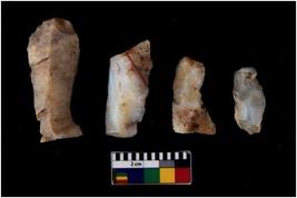 | Description / विवरण | There are n 4 Flake tool; There are multidirectional irregular scar pattern on them. few have blunt edges, Some of them are tapering at one end. |