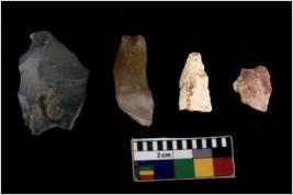 | Description / विवरण | There are n 4 flakes tool; there are multidirectional irregular scar pattern on them; made of short flakes and all four have tapering edges. |