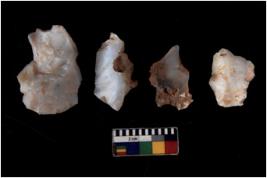 | Description / विवरण | There are n 4 of utilized worked cores and show multidirectional irregular scar pattern on both dorsal and ventral sides. Three have a broken tip. |