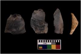 | Description / विवरण | There are n 4 flakes tool; there are flakes tool with prominent flaking marks. It made up of a short flakes with sides trimmed. It is rectangular in shaped. |