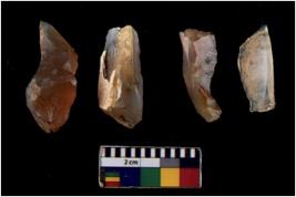 | Description / विवरण | There are n 4 Flake tool; There are multidirectional irregular scar pattern on them. few have blunt edges, Some of them are tapering at one end. |