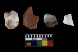 | Description / विवरण | There are n 4 flakes tool; there are multidirectional irregular scar pattern on them; made of short flakes and all four have tapering edges. |