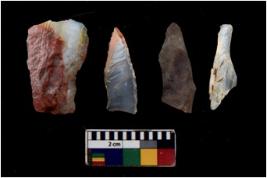 | Description / विवरण | There are n 4 Flake tool; There are multidirectional irregular scar pattern on them. few have blunt edges, Some of them are tapering at one end. |