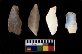 | Description / विवरण | There are n 4 Flake tool; There are multidirectional irregular scar pattern on them. few have blunt edges, Some of them are tapering at one end. |