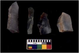 | Description / विवरण | There are n 4 Flake tool; There are multidirectional irregular scar pattern on them. few have blunt edges, Some of them are tapering at one end. |