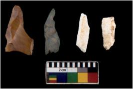 | Description / विवरण | There are n 4 flakes tool; there are multidirectional irregular scar pattern on them; made of short flakes and all four have tapering edges. |