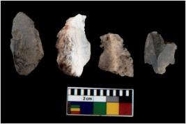 | Description / विवरण | There are n 4 flakes tool; there are multidirectional irregular scar pattern on them; made of short flakes and all four have tapering edges. |
