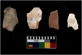 | Description / विवरण | There are n 4 flakes tool; there are flakes tool with prominent flaking marks. It made up of a short flakes with sides trimmed. It is rectangular in shaped. |