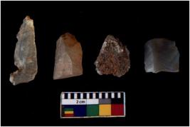 | Description / विवरण | There are n 4 Flake tool; There are multidirectional irregular scar pattern on them. few have blunt edges, Some of them are tapering at one end. |