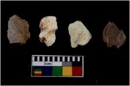 | Description / विवरण | There are n 4 Flake tool; There are multidirectional irregular scar pattern on them. few have blunt edges, Some of them are tapering at one end. |