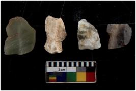 | Description / विवरण | There are n 4 flakes tool; there are flakes tool with prominent flaking marks. It made up of a short flakes with sides trimmed. It is rectangular in shaped. |