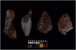 | Description / विवरण | There are n 4 flakes tool; there are multidirectional irregular scar pattern on them; made of short flakes and all four have tapering edges. |