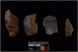 | Description / विवरण | There are n 4 Flake tool; There are multidirectional irregular scar pattern on them. few have blunt edges, Some of them are tapering at one end. |
