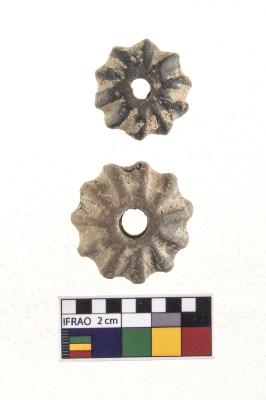 | Description / विवरण | Bead with circular section , black in colour , body given them appearance of a cogged wheel ridges are fairly regularly divided on bead into equal segmen. |