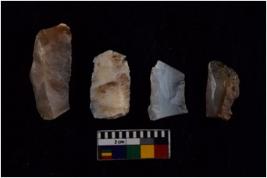 | Description / विवरण | There are n 4 flakes tool; there are multidirectional irregular scar pattern on them; made of short flakes and all four have tapering edges. |
