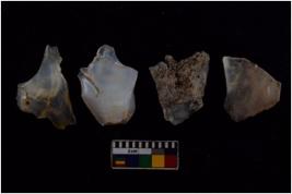 | Description / विवरण | There are n 4 flakes tool; there are multidirectional irregular scar pattern on them; made of short flakes and all four have tapering edges. |